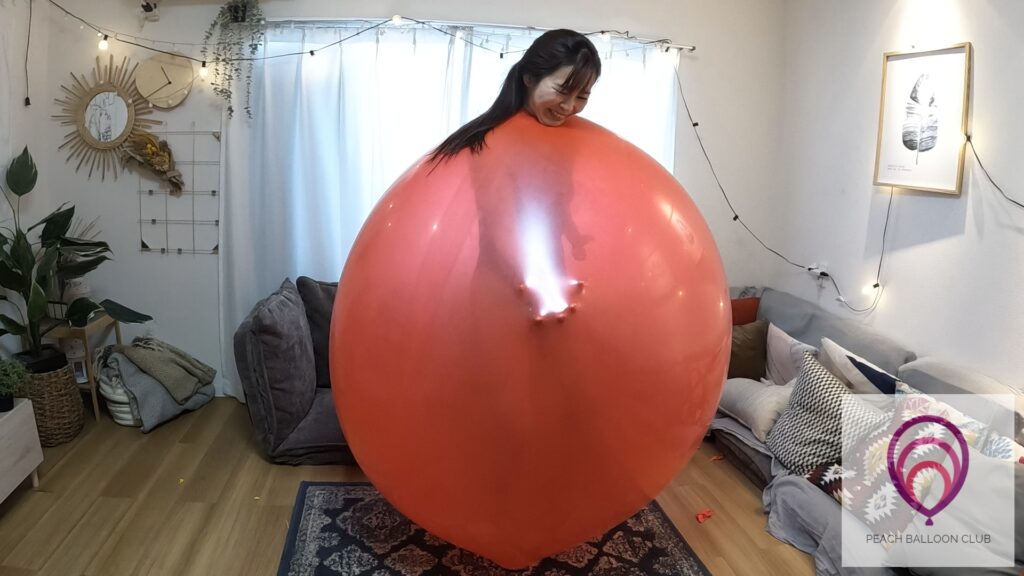たくさんの風船に囲まれて楽しそうなあかねちゃん。風船たちにくっついたり、体重をかけたり優しく撫で回してたくさん愛情表現をしてくれます。あかねちゃんのうっとりした表情と、キュッキュと音を立てる風船たち。
