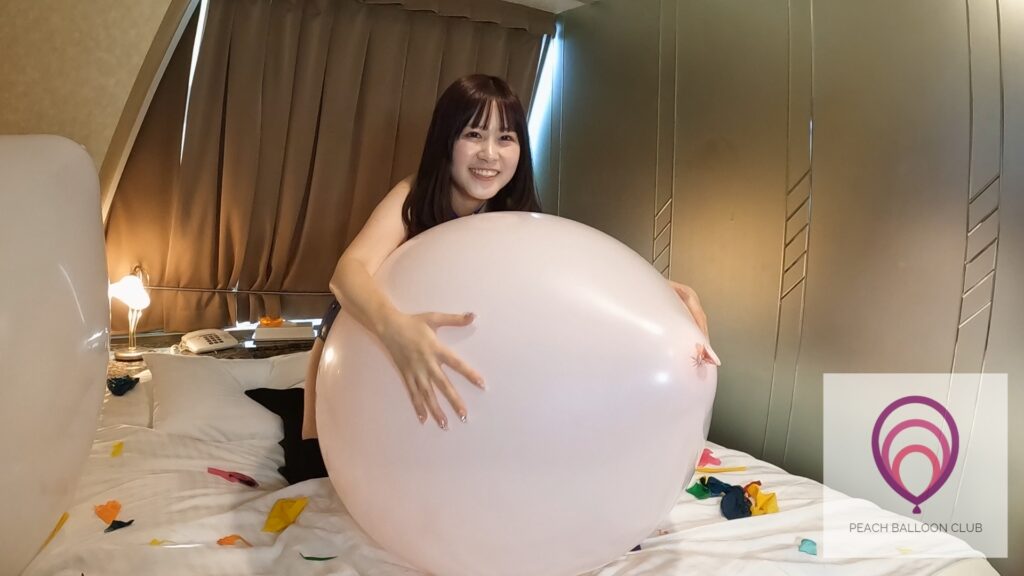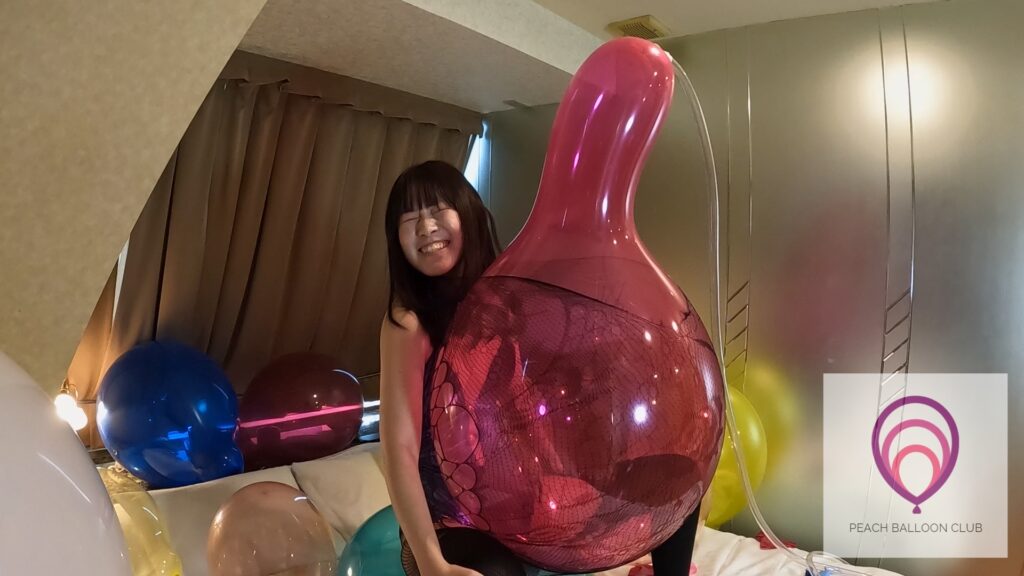 途中ポンプの調子が少し悪くて、予想よりも時間がかかってしまいましたが、ネックまで膨らんでいつ割れるか分からない風船に寄り添いながら割れる瞬間を待つりんかさんの表情が可愛い!限界ギリギリで長く耐えてくれて最高でした。笑