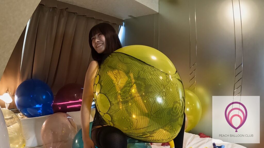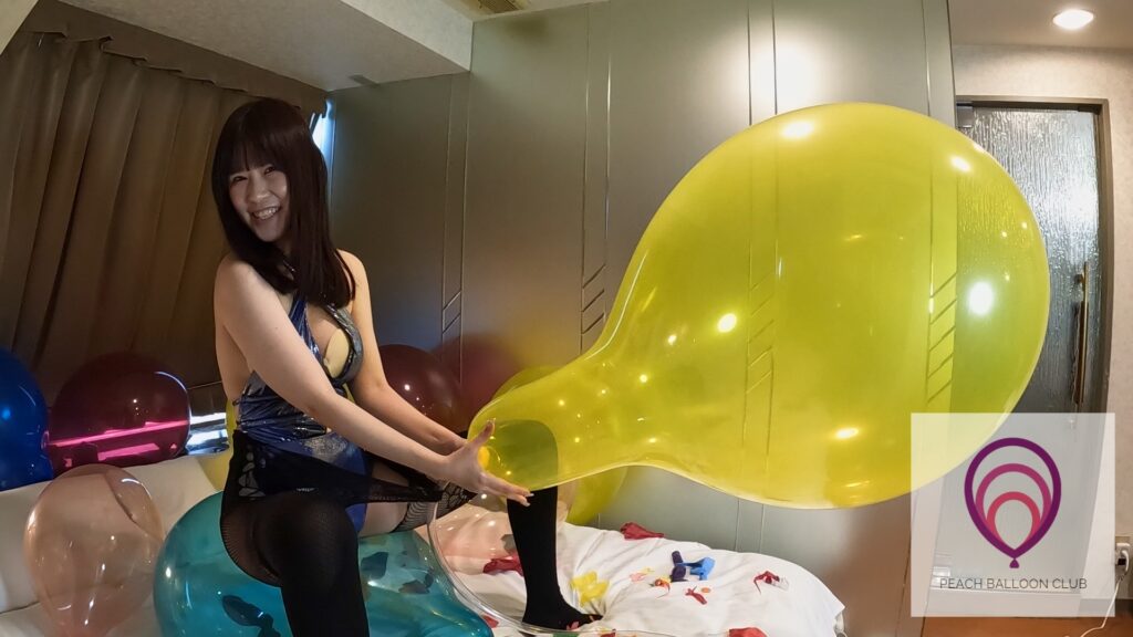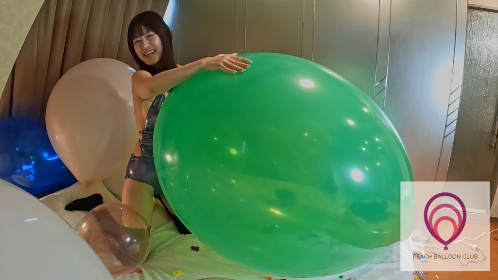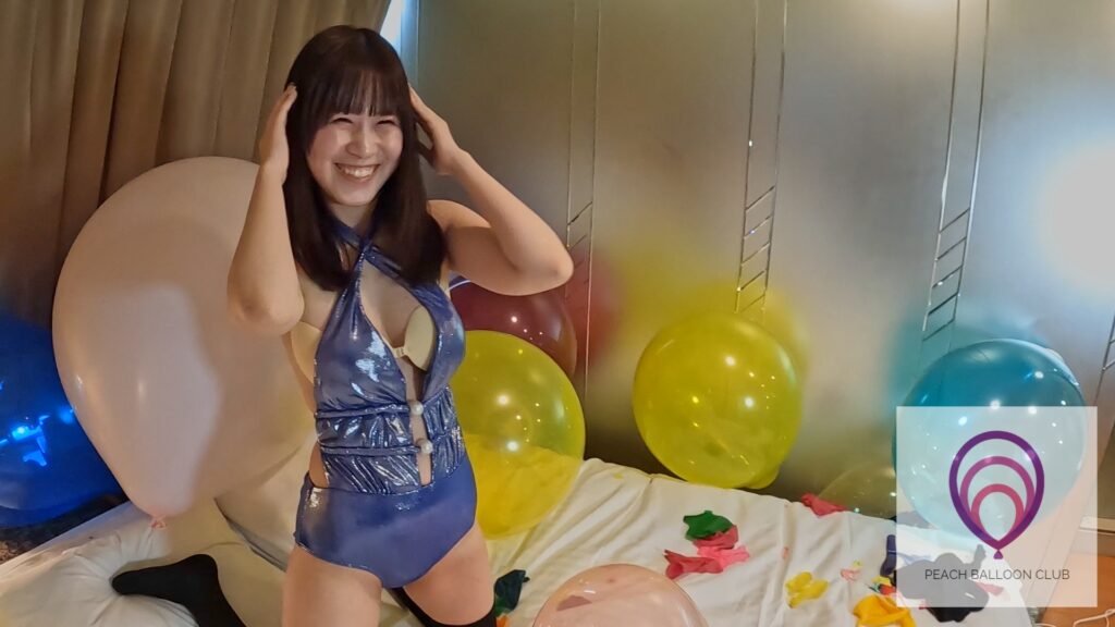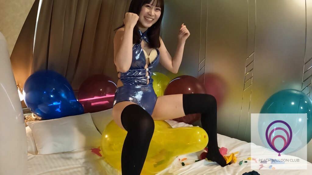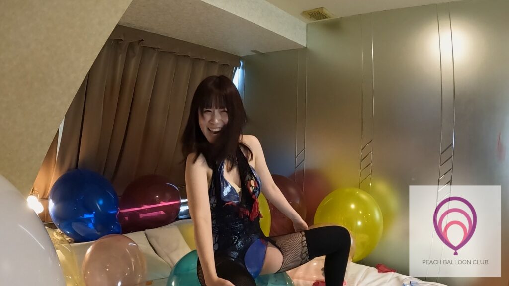 「ピーチバルーンクラブ#13-1 りんかとたくさんの風船 (Rinka and lots of balloons)」ではりんかさんがたくさんの風船に囲まれながら爪を立てたり、お尻を使ってどんどん風船を割ってくれます。
